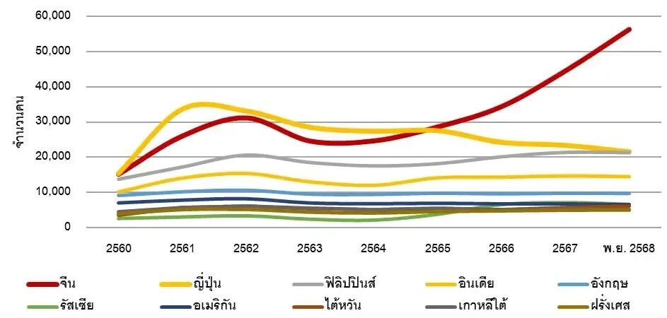 截至 2025年11月底,在泰国持有合法工作许可证的中国人,一共有 56,202 人,已经稳稳排在第一位。