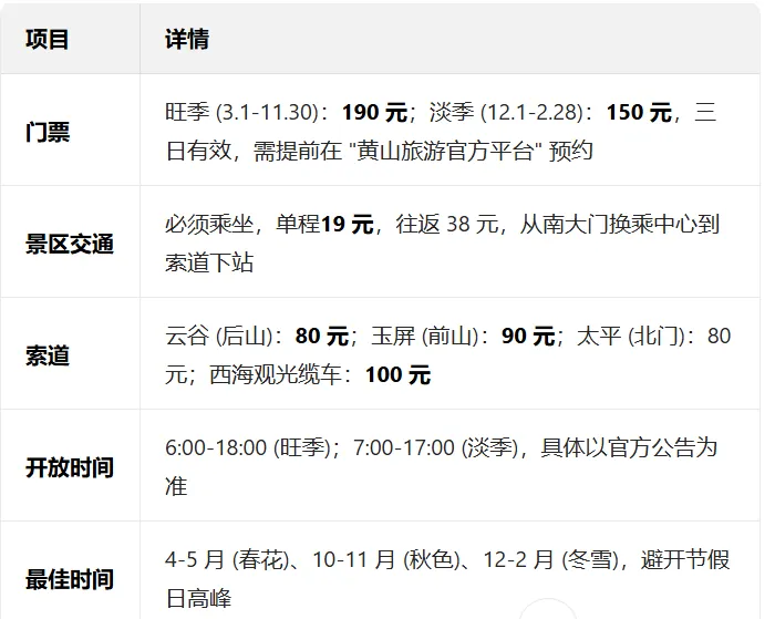 :淡季 (12-2 月) 门票 + 索道均有优惠,人少景美,适合错峰出行 山顶住宿选多人间床位(200-300 元 / 人)比标间划算,社交性强 - 安全第一