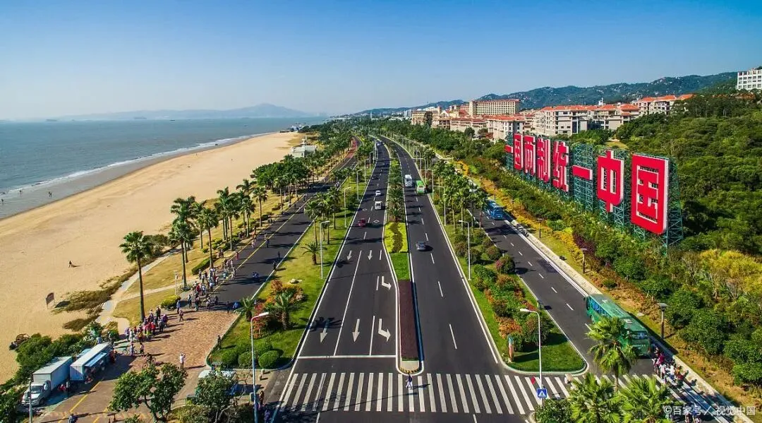 环岛路环绕厦门岛,是厦门市环海风景旅游干道之一。全程43公里,宽60米,双向6车道,为城市一级次干道。机动车道18-24米,非机动车道6-7米,人行道6-8米,绿化带80-100米。1998年,环岛路铺设了长3400米的红色路面,建成中国首条彩色道路。道路沿线有众多雕塑,如长达247.59米的《鼓浪屿之波》乐谱雕塑。环岛路串联了众多景点,如胡里山炮台、椰风寨、国际会展中心、五缘湾等。其中,从厦门大学到会展中心的一段海岸被称为 “黄金海岸线”。木栈道主要分布在白城沙滩至珍珠湾段。环岛路的建设一直奉行“临海见海,把最美的沙滩留给百姓”的宗旨。