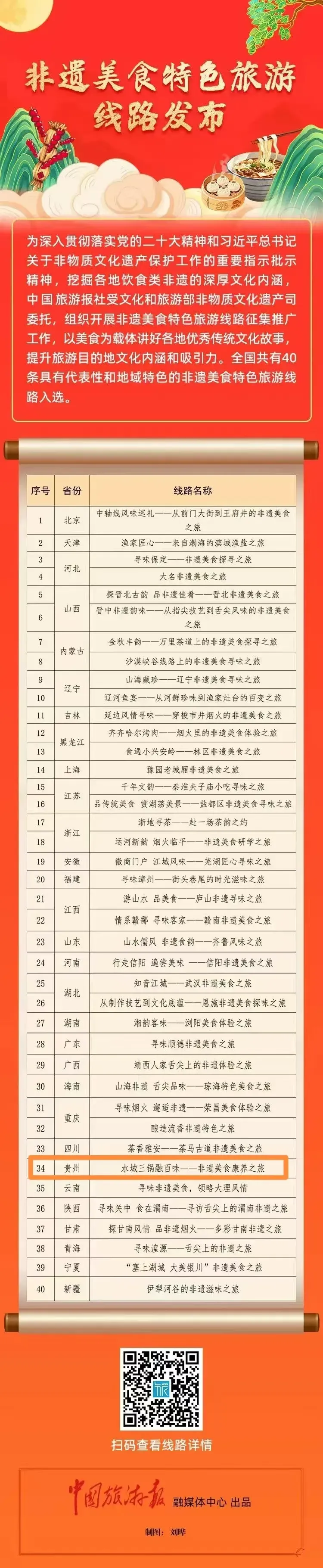 此次线路征集工作由文化和旅游部非物质文化遗产司委托中国旅游报社开展,自2025年8月启动以来共收到全国各地报送的非遗美食特色旅游线路170条。此次发布的40条线路如同一场跨越中国的味觉旅行推荐: