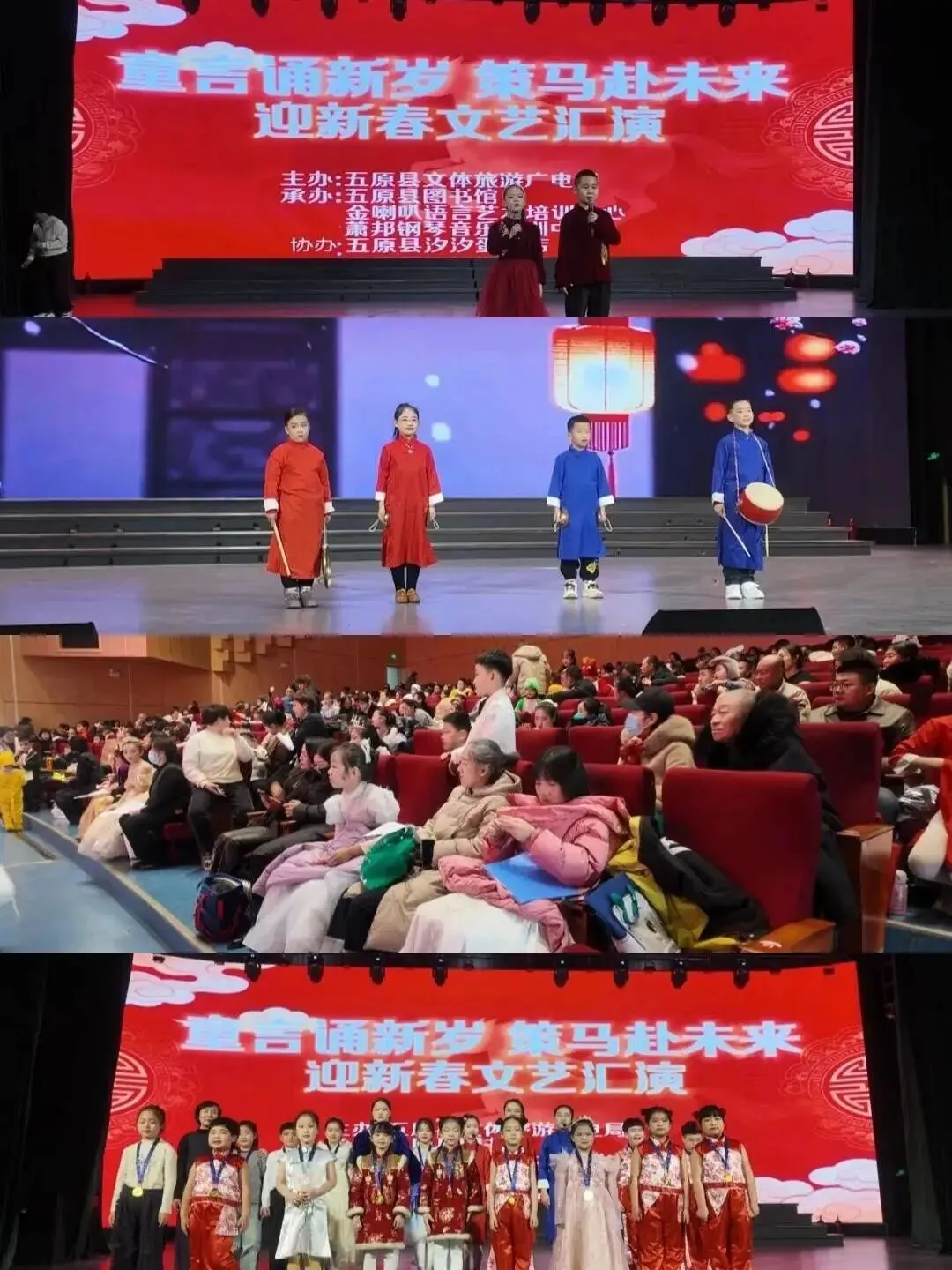 6、1月26日,由五原县文体旅游广电局主办,五原县图书馆、金喇叭语言艺术培训中心、萧邦钢琴音乐培训中心承办,五原县汐汐蛋糕店协办的“童言诵新岁 策马赴未来”迎新春文艺汇演,在图书馆多功能厅成功举办。