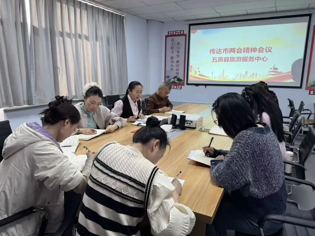 9、1月27日,五原县旅游服务中心负责人向全体干部职工传达市两会精神,凝聚发展共识,推动文旅工作高质量发展。