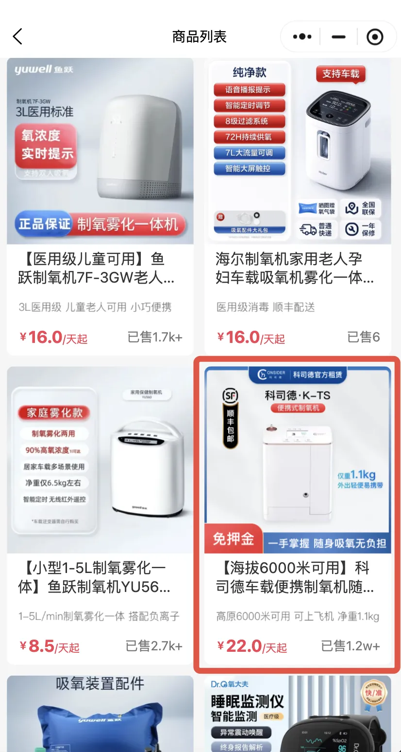 2.找到自己想要的制氧机,点击之后进入查看商品详情。