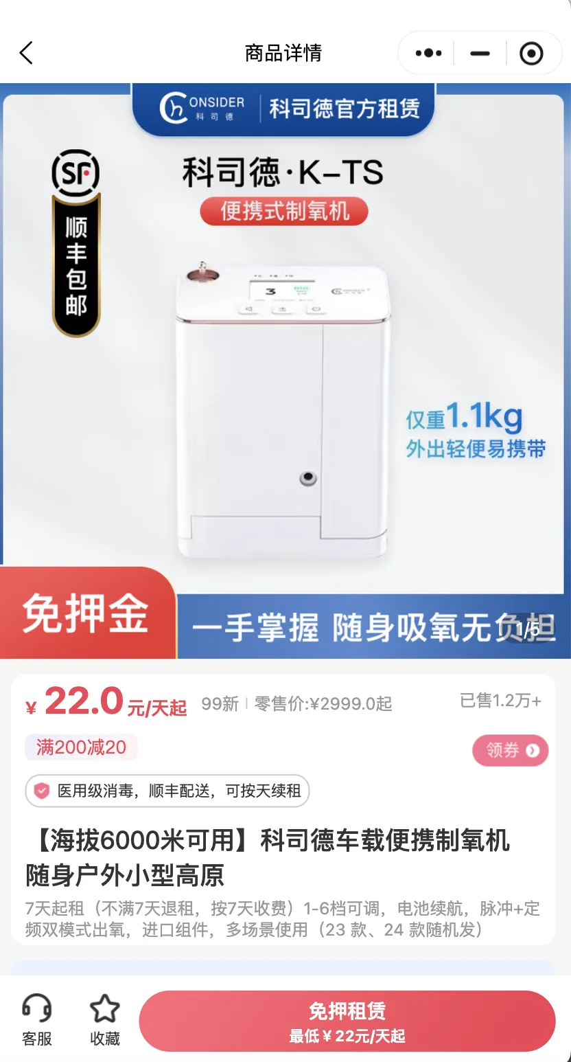 如此性能优良的制氧机,其购买价格也不低,官方正品价均在千元以上。所以,对于前往高原地区短期旅游或到户外需要吸氧的人群而言,有没有什么两全齐美的办法呢?