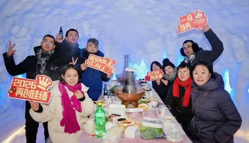 上岸之后,便是另一番暖意融融的景致。雪屋里的火锅热气腾腾,矿泉煮茶的清香袅袅飘散,景区提供的暖宝宝和热姜茶......勾勒出“冰火两重天”的奇妙体验。驯鹿在雪地里踱步与人亲近,雪地摩托掀起阵阵雪雾,云顶咖啡伴着雪景醇香,沐雪温泉消解一身寒意,多元的冰雪玩法,让每一位游客都能找到属于自己的冬日乐趣。