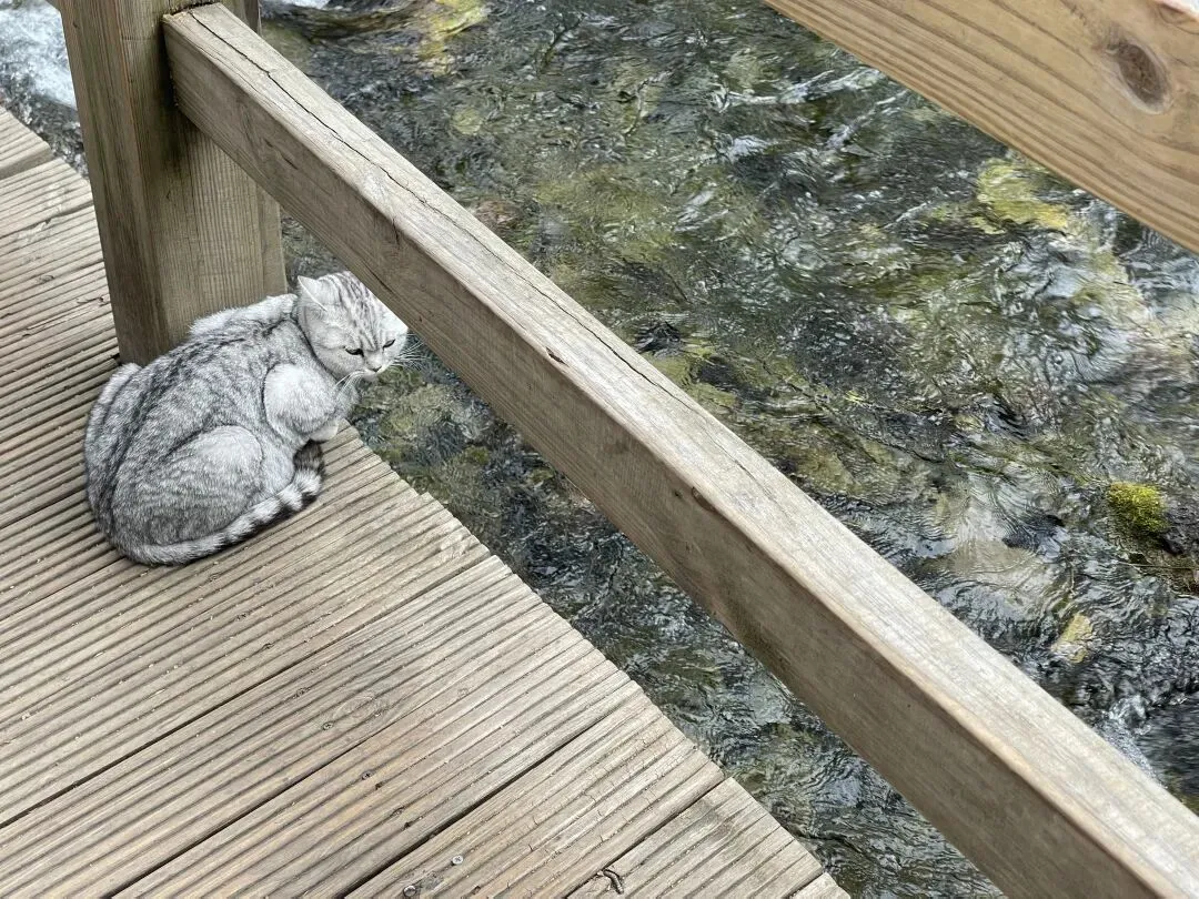 妈妈问迎面过来的游客前面风景怎样,他们说很好看的,话语间透露着不去就会后悔的意思。不久,我们看到了一个路标,表示前面一千米处就是树正磨房。想到之前两次去过树正磨房,前面风景很多也看了,再考虑到下午要去酒店取行李,还要赶16:30的大巴车,所以我们就折返了。