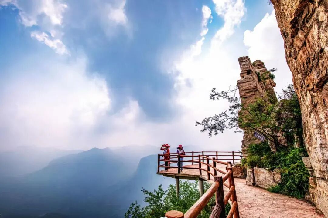第二天 早餐后游览国家AAAA级旅游景区、国家风景名胜区——太行五指山景区。在游客中心,换乘景区观光车,抵达五行广场,乘坐索道,到达索道上站之后,徒步游览祈福阁,至雄狮探海,一座自然形成的山峰上一头雄狮,盘卧在太行五指山的山巅,悠然惬意地望着脚下的云海。到达观景台上可亲历一览众山小的成就感,坐观群山巍峨,感叹“无限风光在险峰”!后走过长空栈道,悬崖栈道全长 1500 多米,横贯五指山景区顶峰,形成可供游客参观、游览环线。栈道途中有 5 个观景台和一座桥组成,登上栈道可观看太行山脉的雄伟壮观,是摄影、徒步爱好者的绝佳游览点。到达五指禅院可敬香祈福,灵验无比。乘坐返程索道下山,步行至苦禅洞、悟空谷零距离跟孙大圣互动拍照,身临其境感受“人在西游中”的诗画感……感受来自谷底的清凉与宁静,“森”呼吸大自然的清新~至五行广场,乘景区观光车,返回到游客中心,游览完毕用简餐,然后返程,结束愉快的大圣之旅,返回温馨的家园!