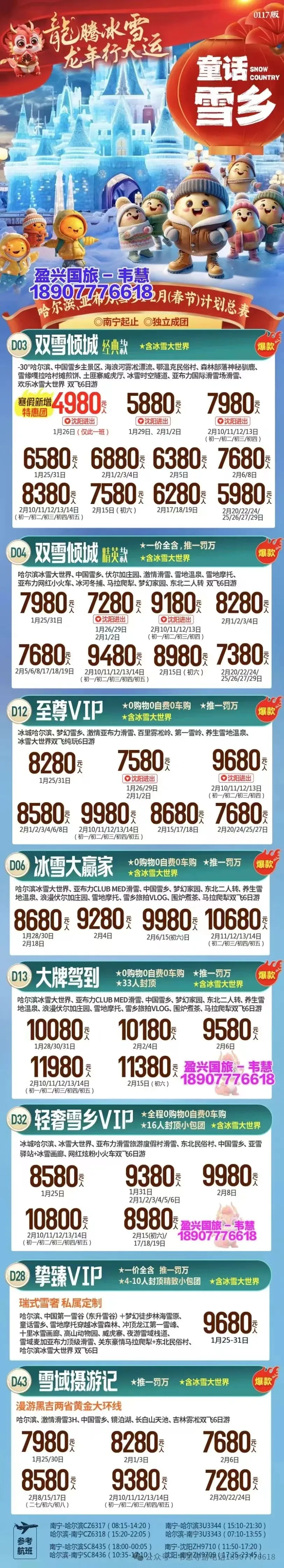 二月份【包括春节假期】区外出省/国内旅游产品线路汇总!持续更新中......