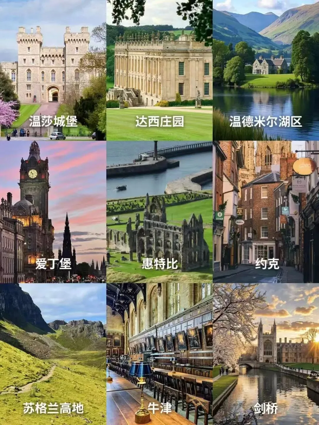 其他:巨石阵、科茨沃尔德田园、湖区(温德米尔湖)、布莱顿海滨