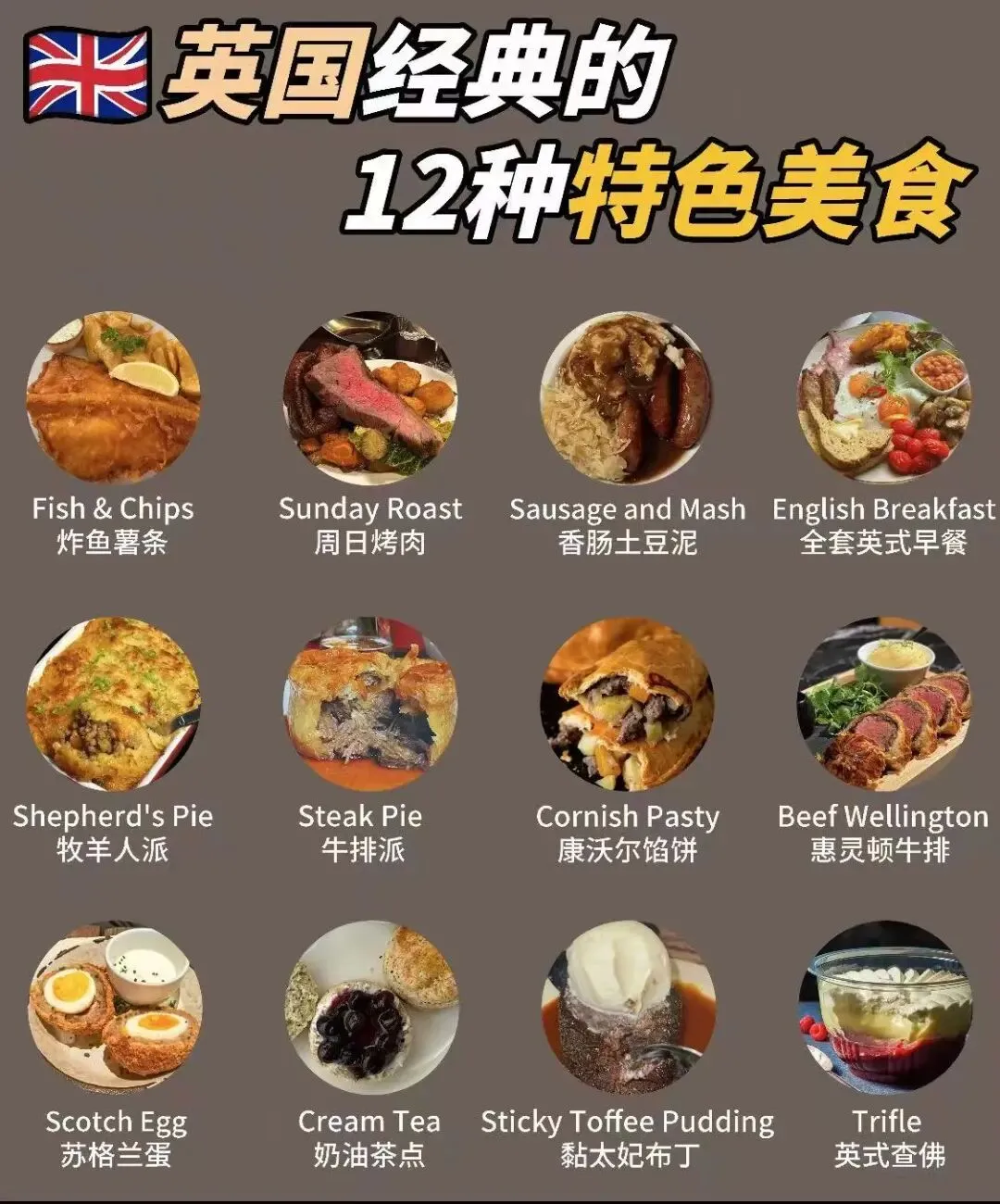 特色:全英早餐、炸鱼薯条(推荐连锁店Poppies)、下午茶(伦敦Ritz或巴斯Sally Lunn’s)。