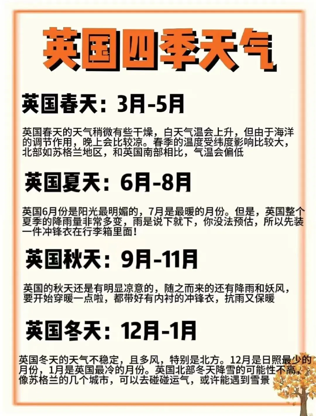 冬季(11-12月):圣诞集市(伦敦海德公园、爱丁堡王子街),氛围浓厚。