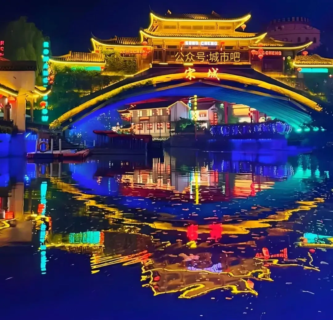 网友建议:夜游更佳,灯光下的宋城宛如穿越时空。