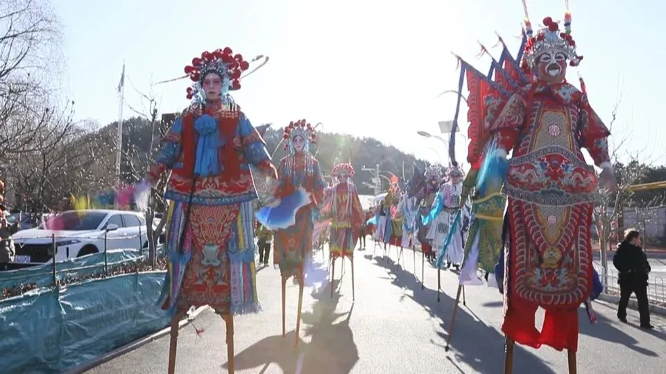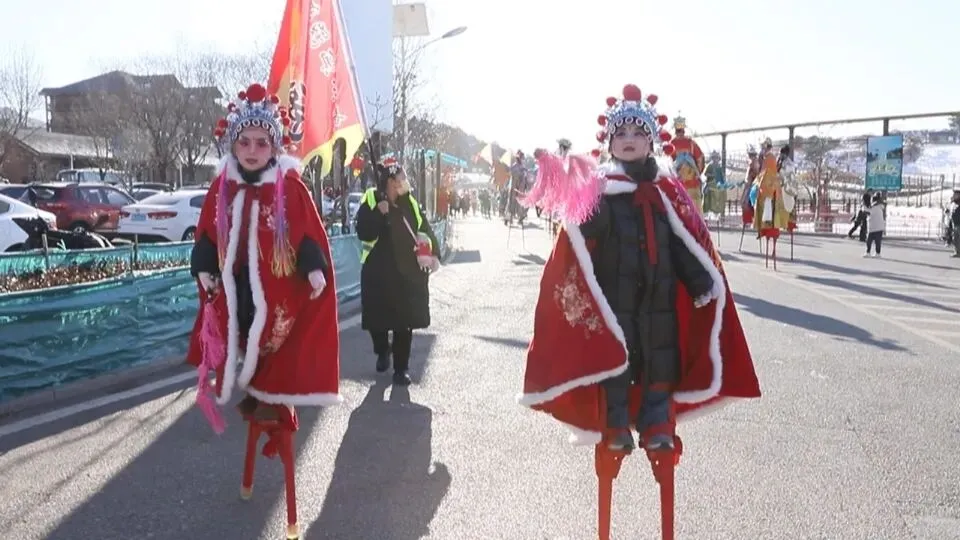活动中,活力四射的秧歌表演让现场气氛瞬间沸腾起来。演员们身着色彩鲜艳的传统服饰,手持彩扇、红绸,踏着铿锵有力的鼓点扭起灵动舞步,将北方民俗的豪迈与质朴展现得淋漓尽致,浓浓的年味扑面而来。高跷表演更是将现场气氛推向高潮。艺人们脚踩高跷,在广场上大步流星、旋转跳跃,每一个动作、每一段鼓点都承载着世代相传的文化记忆,吸引很多游客参与其中,感受非遗文化的独特魅力。