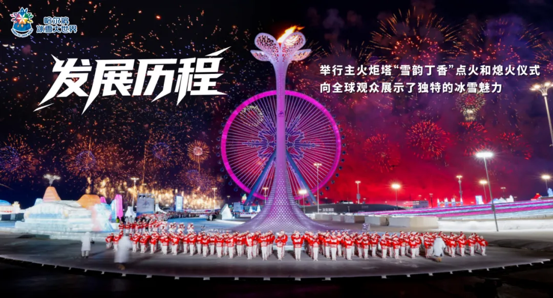 哈尔滨冰雪大世界的创变之路,始于对品牌价值的深度深耕。作为哈尔滨冰雪旅游的核心引擎,其自诞生之初便肩负着“打造世界级冰雪旅游目的地” 的使命。从承接央视春晚分会场、亮相北京冬奥会暖场环节,到成为哈尔滨亚冬会开闭幕式分会场,通过全球直播向世界展示“雪韵丁香”主火炬塔的独特魅力,哈尔滨冰雪大世界不断借助重大活动平台扩大品牌影响力。