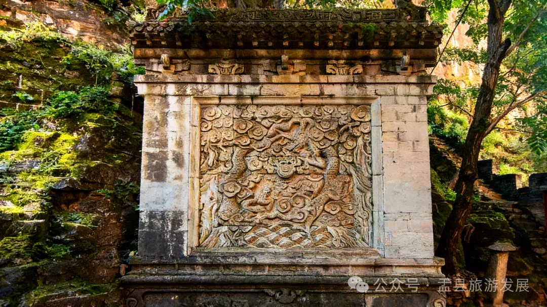 广场石蝽旁的“千古榆抱槐”堪称奇观,干枯的槐树被生机勃勃的榆树紧紧环抱,恰如赵氏一族从灭门到平反的坎坷历程,这棵千年古树早已列入山西名树名录。明万历年间修建的山门,“藏山”二字由张士贵后人亲笔题写,四百余年风雨依旧完好。十三块石头雕刻而成的二龙壁,二龙戏珠寓意吉祥,历经十一年才得以竣工。双层三楹的木牌坊,“藏孤胜境”“古晋雄望”的明代墨宝至今清晰可辨。