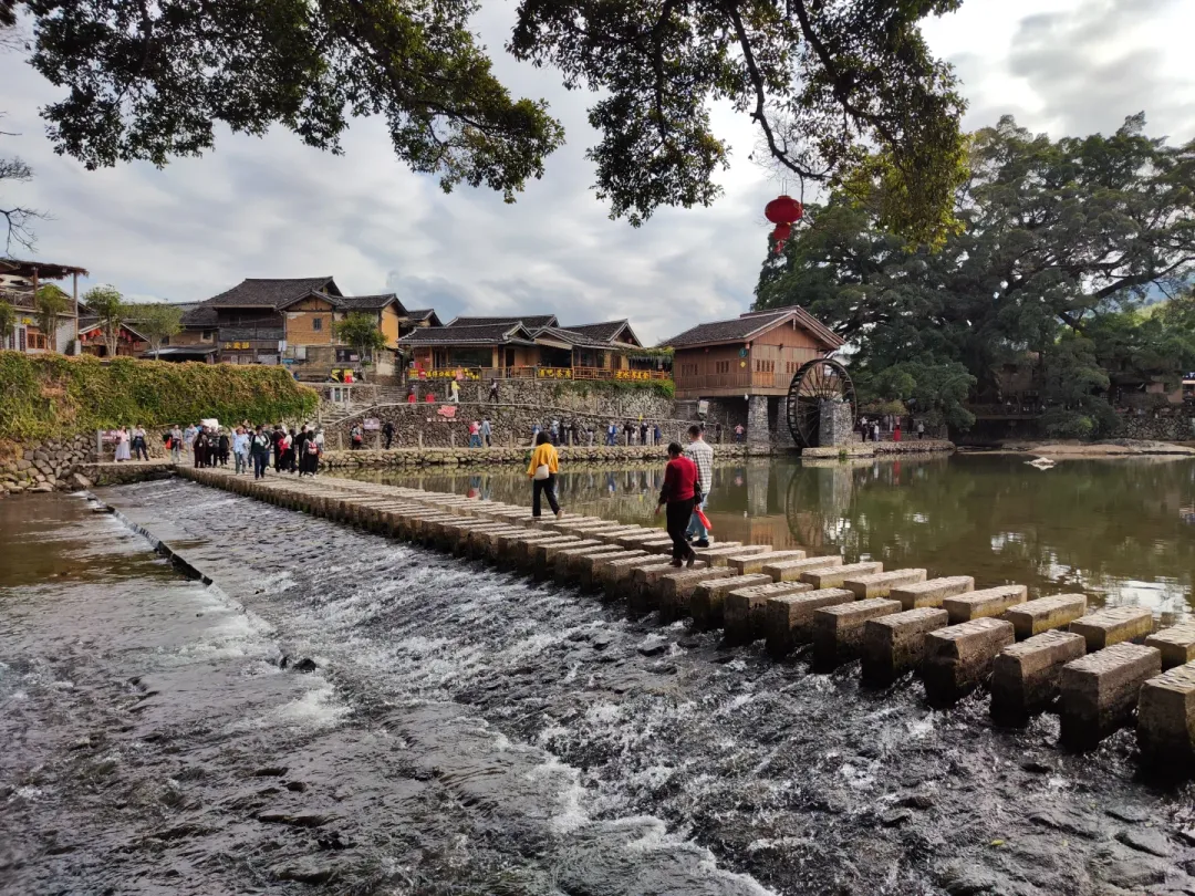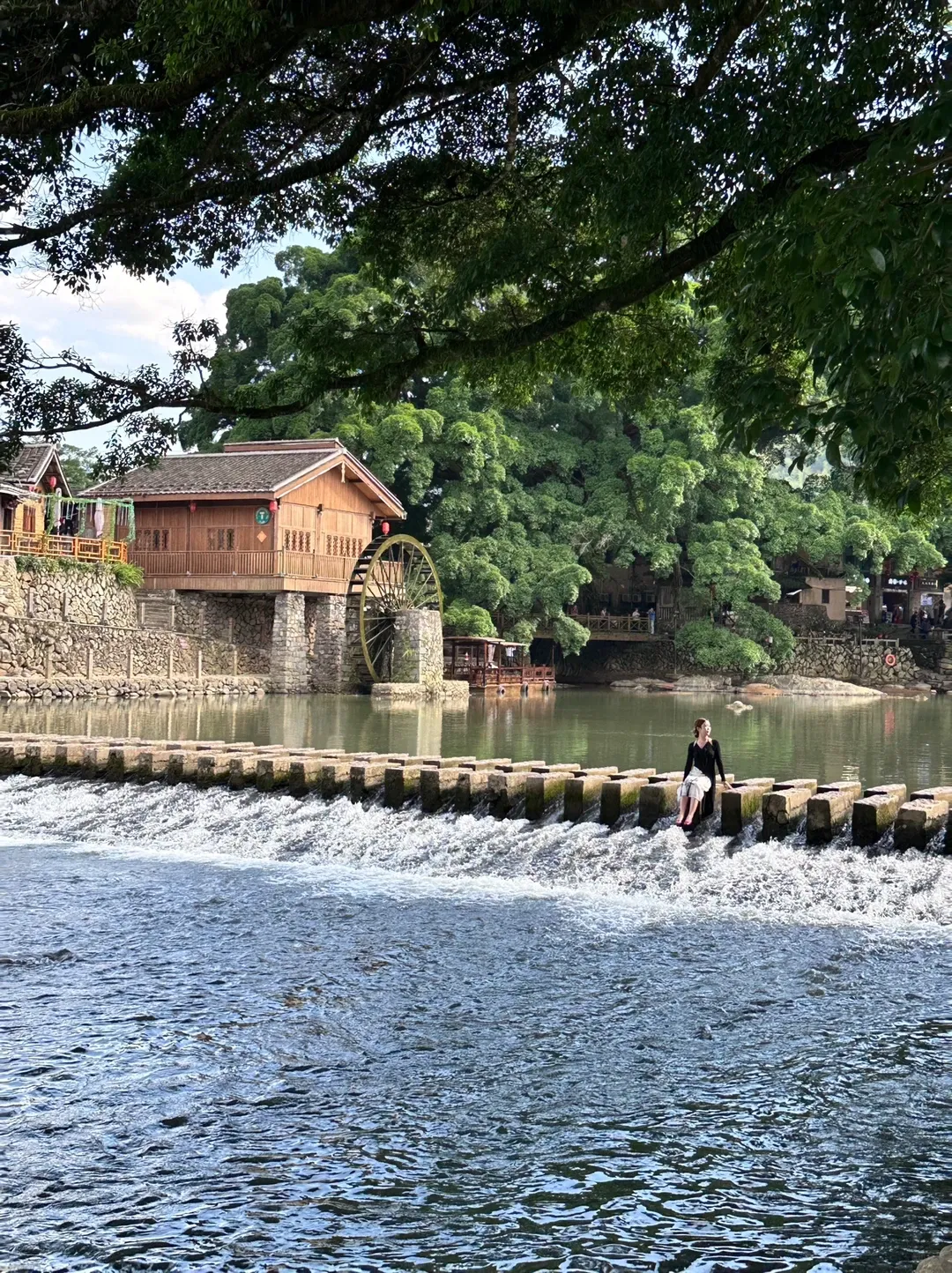 最后是古榕树水车,这里是云水谣最治愈的点位,黄昏时分,夕阳的光影洒在潺潺溪流上,古老的大榕树遮天蔽日,枝繁叶茂,水车缓缓转动,溪水叮咚作响,随手一拍就是电影感大片,穿汉服来这里,漫步在溪流边、榕树下,仿佛穿越回千年之前的闽南村落,治愈感直接拉满,所有的疲惫都能被这温柔的景色化解。