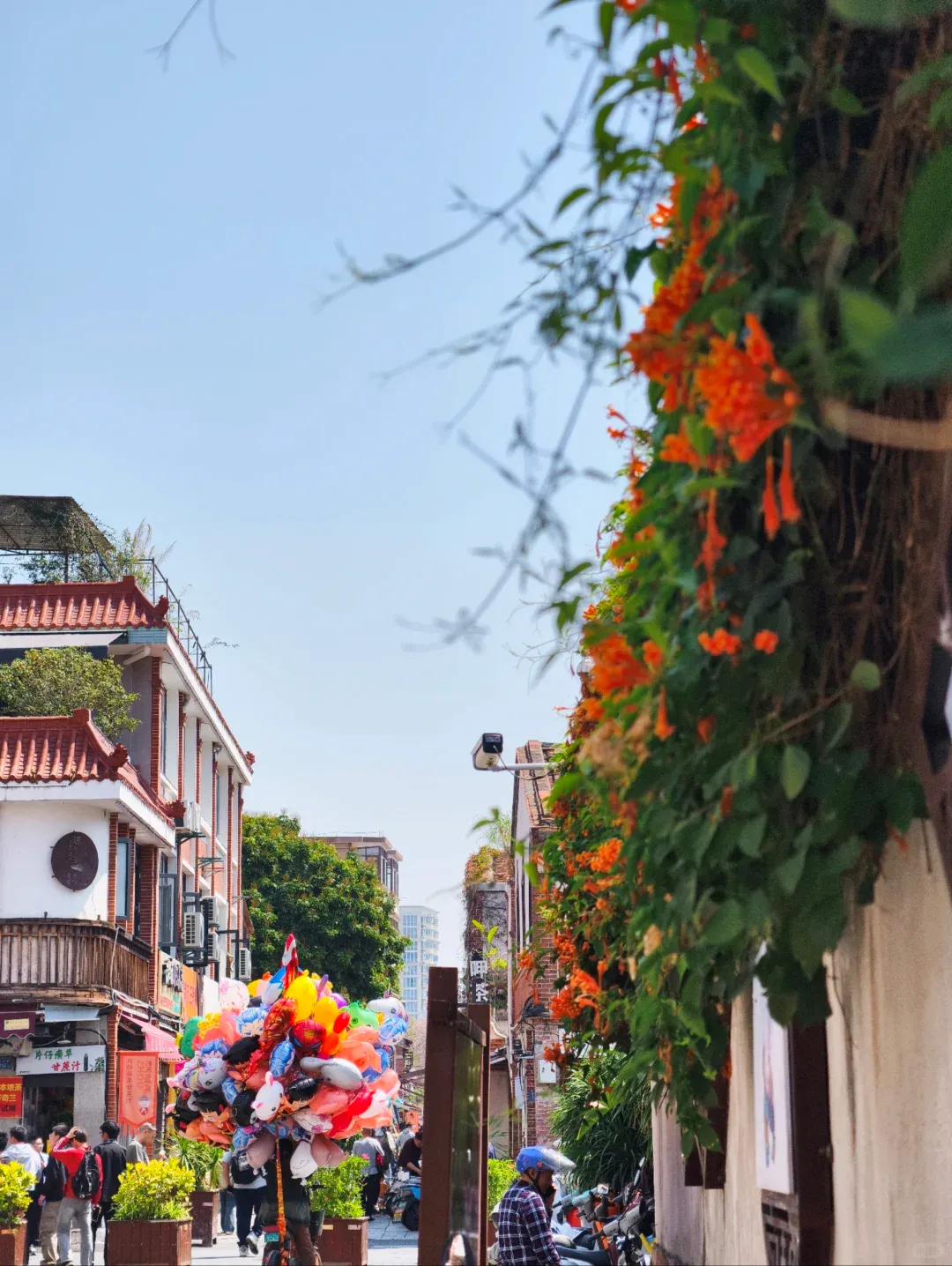 沿着红砖骑楼长廊往前走,两边是古色古香的商铺,有卖闽南特色小吃的,有卖手工艺品的,买一杯牛氏孔庙的片仔癀草甘蔗汁,边走边喝,清爽解腻,还能感受闽南的慢生活,红砖骑楼搭配翠绿的绿植,随手一拍都是闽南风情大片,氛围感拉满;