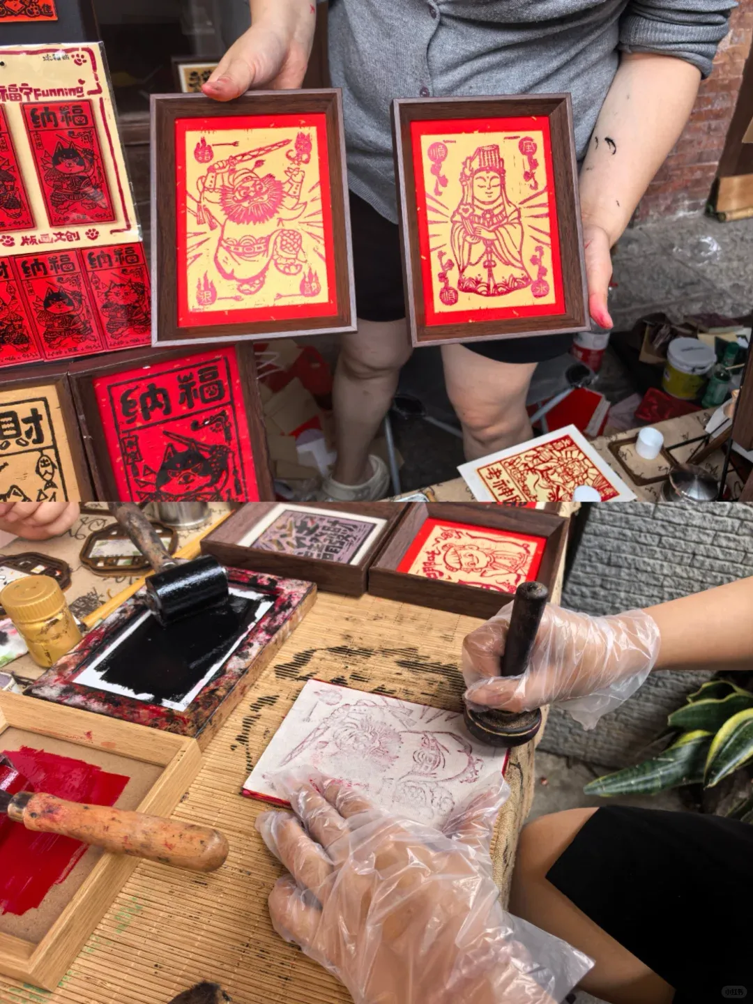中途可以去体验非遗木版年画,20元就能亲手拓印“门神”,跟着当地手艺人学习拓印技巧,感受老闽南的非遗文化,拓好的年画还能带回家当纪念,特别有意义,也能给家人带去一份吉祥祝福;