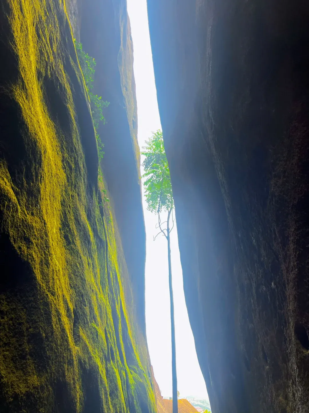 咱们重点打卡两个点位,第一个是一线天裂缝,这里的裂缝仅30厘米宽,只能侧身挤过,身材偏胖的朋友可能需要稍微用力哦,走在里面,抬头只能看到一线天空,既刺激又有趣,拍照也很有氛围感,拍出的照片自带纵深感,特别出片;