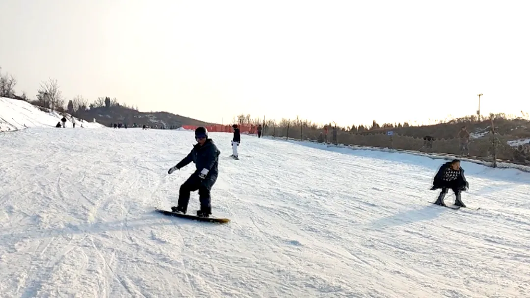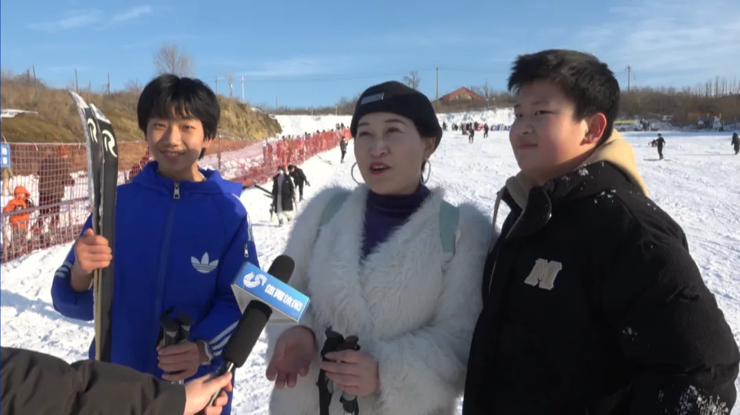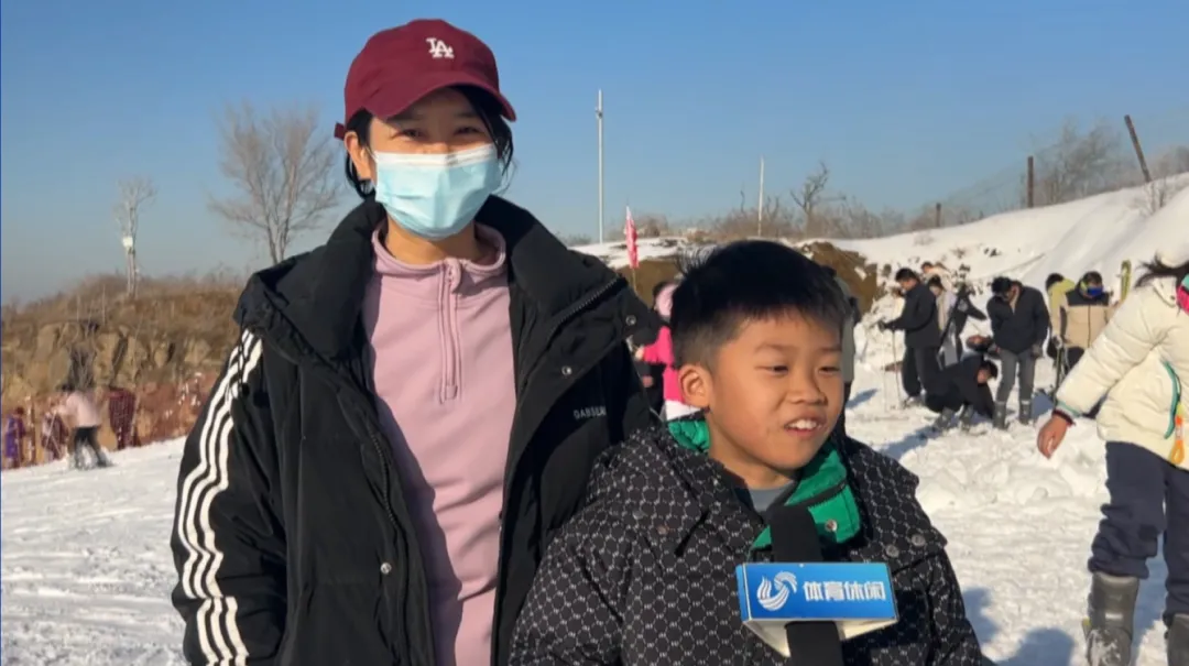 淄博游客 贾燕 淄博游客 张先生:我们以前的时候来过,今年是第一次过来,感觉挺好的,孩子特别喜欢,刚开始也摔了几个跟头,这里整体的感觉还是不错的,人也挺多的,我觉得这个雪也挺好的。从坡上滑了三次,一次没摔,感觉挺好,挺刺激的。