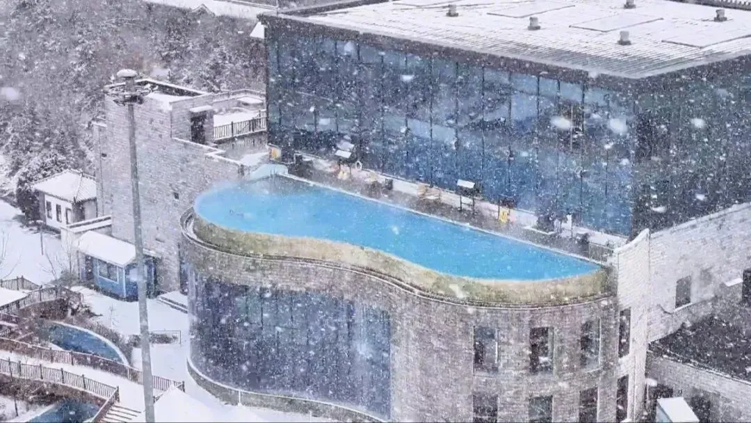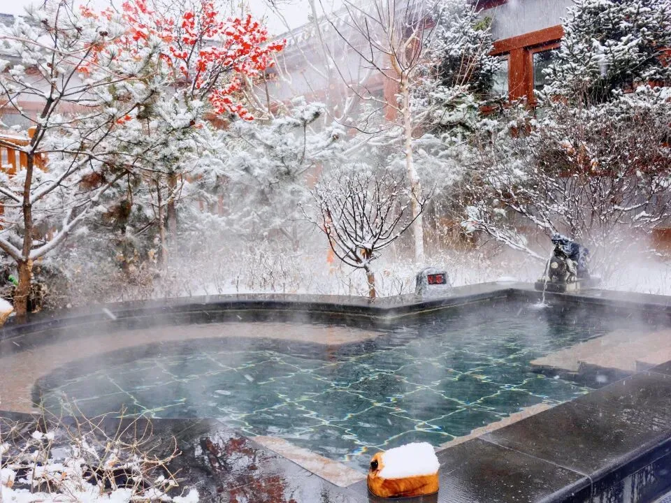 一天的游玩过后,来到双台镇悦珑庄温泉,在无边泳池中悠然自得地泡汤,四周是洁白的雪景,池中是温暖如春的泉水。这种冰火两重天的极致体验,让身心得到完全的放松,所有的疲惫都在这一刻烟消云散。