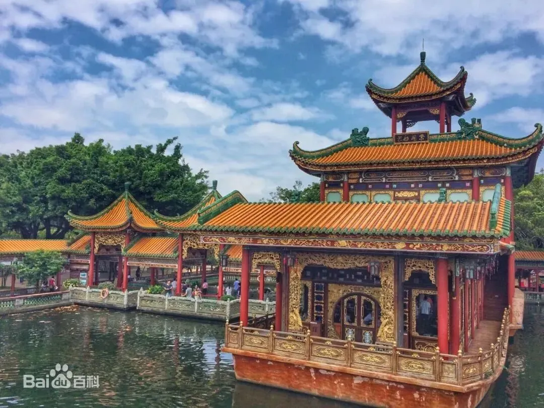宝墨园,位于广州市番禺区沙湾镇紫坭村,建于清朝末年,占地五亩,因破四旧,文物毁于二十世纪五十年代。于1995年重建,历时六载,宝墨园经过四期建设,园面积扩至168亩(约10万平方米),是集清官文化、岭南古建筑、岭南园林艺术、珠三角水乡特色于一体的大型岭南文化山水园林,是国家AAAA级旅游景区。