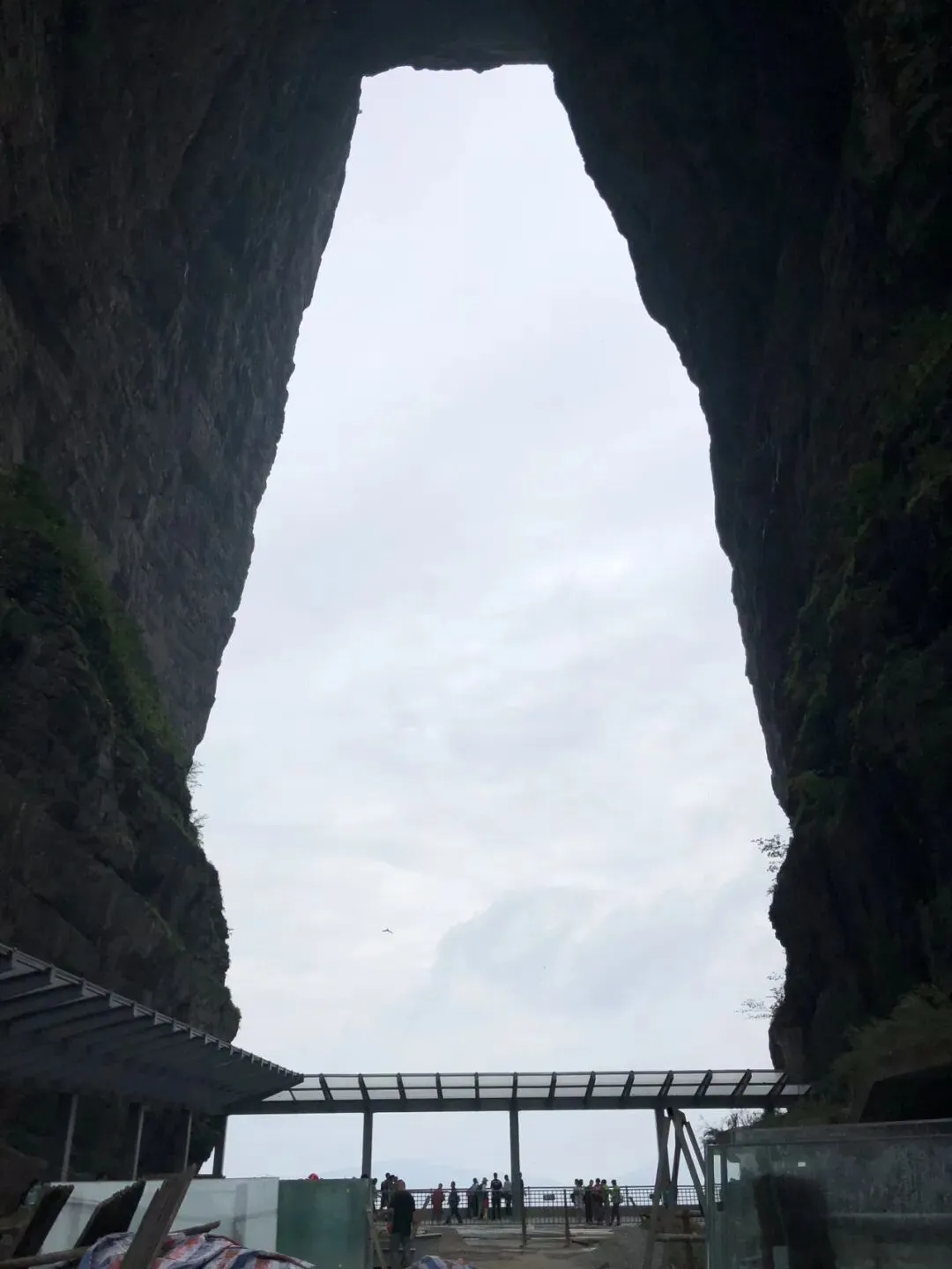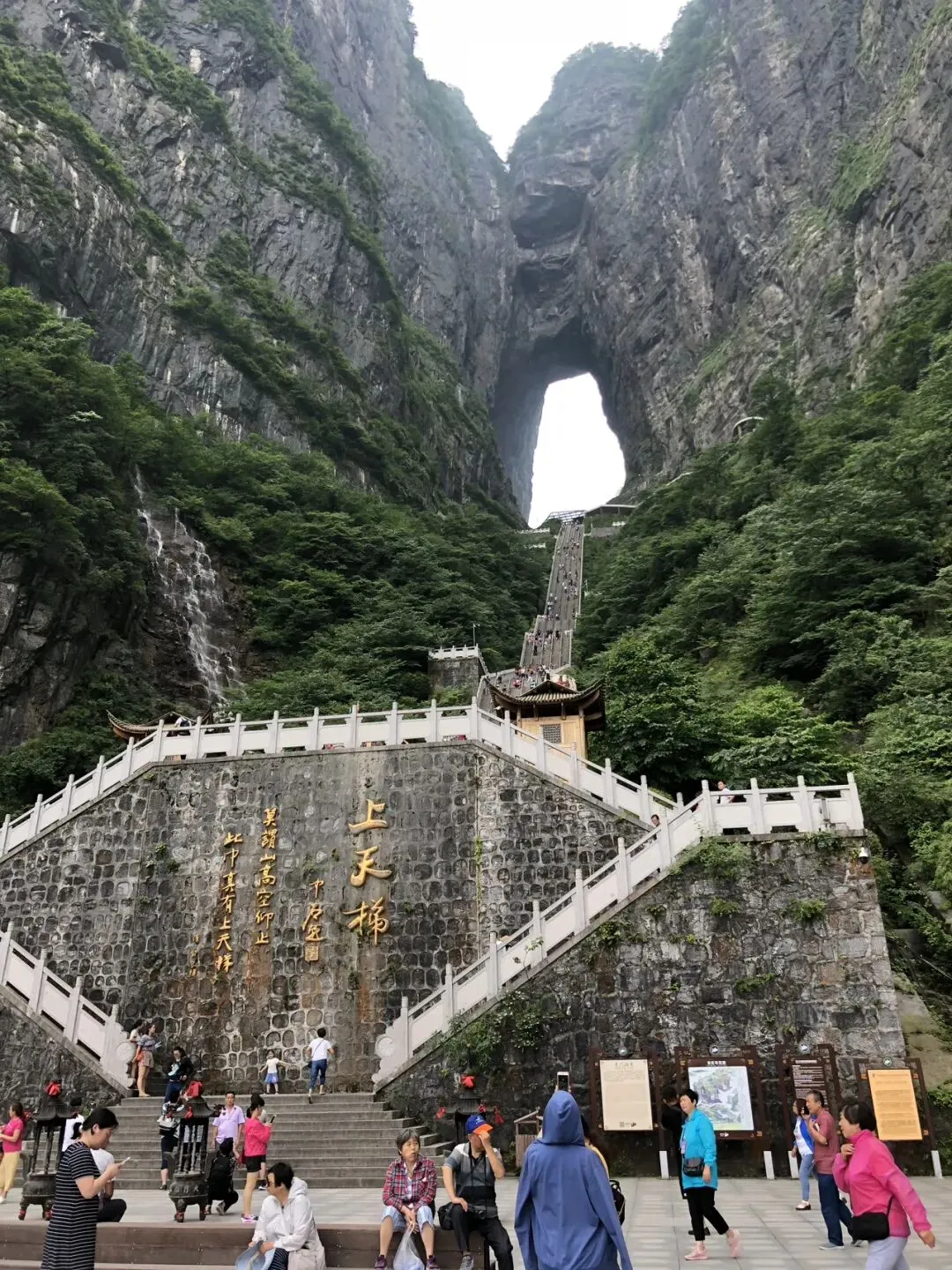 坐穿山扶梯下来就是天门洞。站在天门洞口,感觉大自然的鬼斧神工 。从天门洞到天门洞广场有999级台阶可下山 ,台阶特别陡峭,我们望而生畏,另选路线。