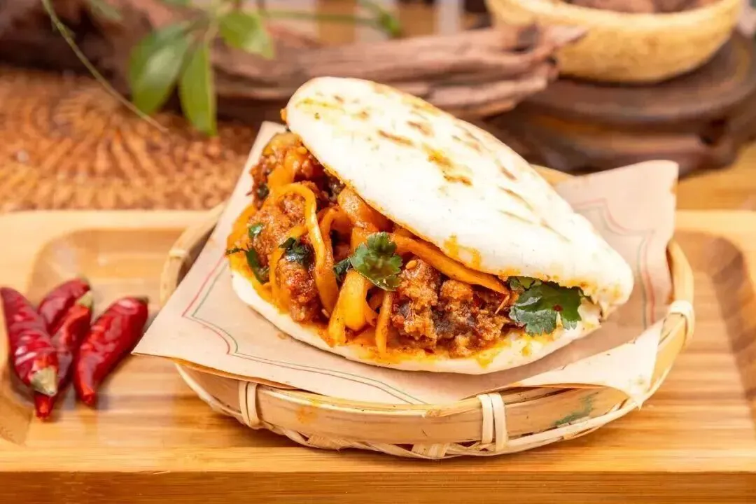 带着麦香的白面馍馍烤得微微发黄,加上丰富的馅料,一口下去碳水满满,快乐加倍!