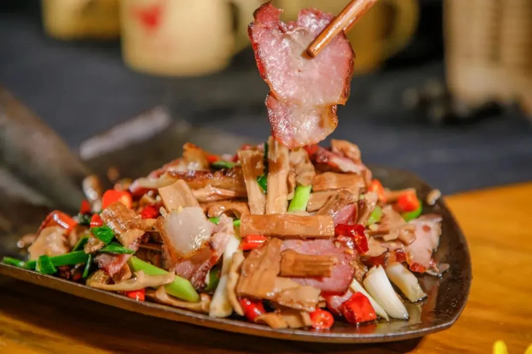 现炸的芭蕉花外酥里嫩,裹着辣椒面越嚼越香;铁锹盛的铲铲菜带着锅气,柴火腊肉肥而不腻,每一口都是老矿工们的日常味道。