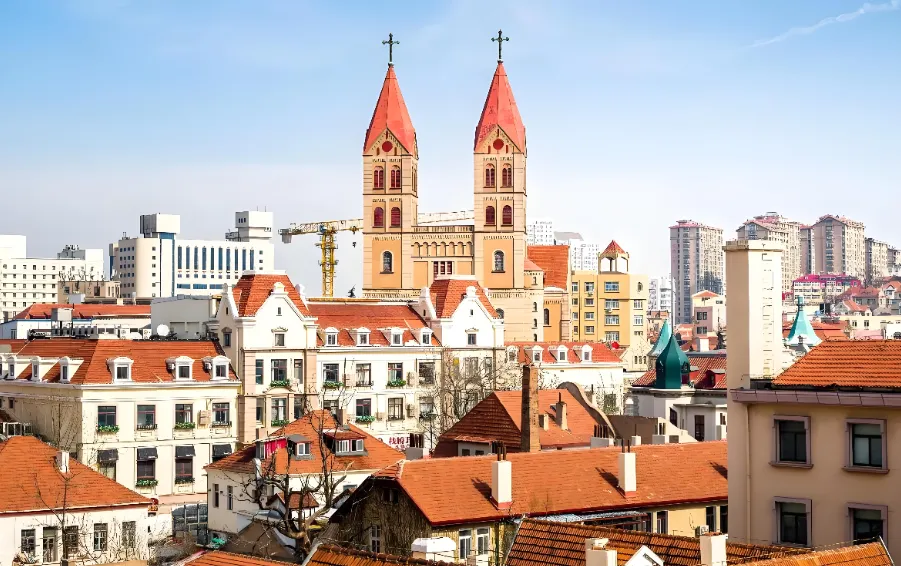 第二站:圣弥厄尔大教堂——哥特式建筑的“婚纱圣地”就在栈桥步行10分钟的浙江路上,双塔高55米,是青岛最大的罗马式建筑。教堂前的广场常有拍婚纱照的,您可以蹭个侧景拍张“假装在欧洲”的照片。内部能进,彩色玻璃窗美到窒息,但别大声喧哗,周日有弥撒,尽量别打扰。游玩干货:下午3-4点阳光斜照,红瓦黄墙更鲜艳;穿长裙或复古衬衫,和建筑风格更搭;门口有卖教堂文创雪糕,25块钱一支,拍照好看。