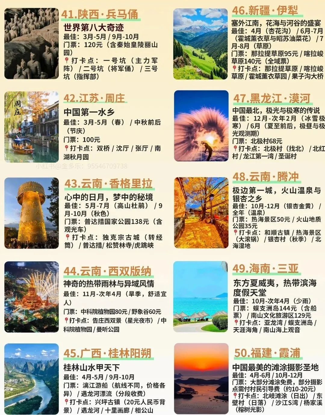 这份中国50个必去旅行地清单,简直是把祖国的大好河山都浓缩在里面了。