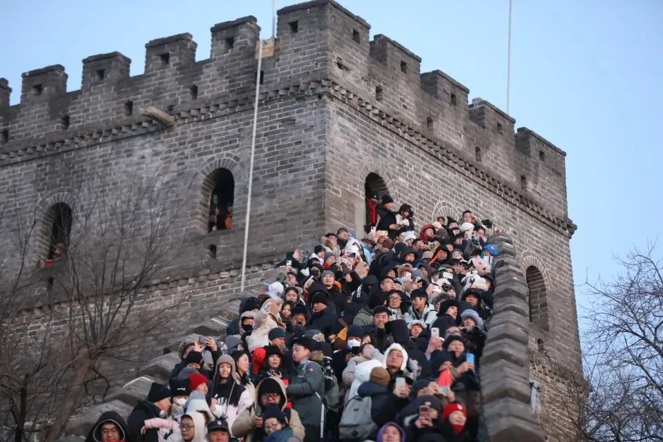 第二个是北京长城。春节真心不太建议爬长城,我之前虽然讲过冬季是游览古建筑的好时候,但前提是避开节假日,虽然看不到红花绿树,但人少,有古韵,体验好。春节期间长城人山人海,走着很累,再加上北京气温比较低,看不到壮丽的林海,各方面因素导致体验差。