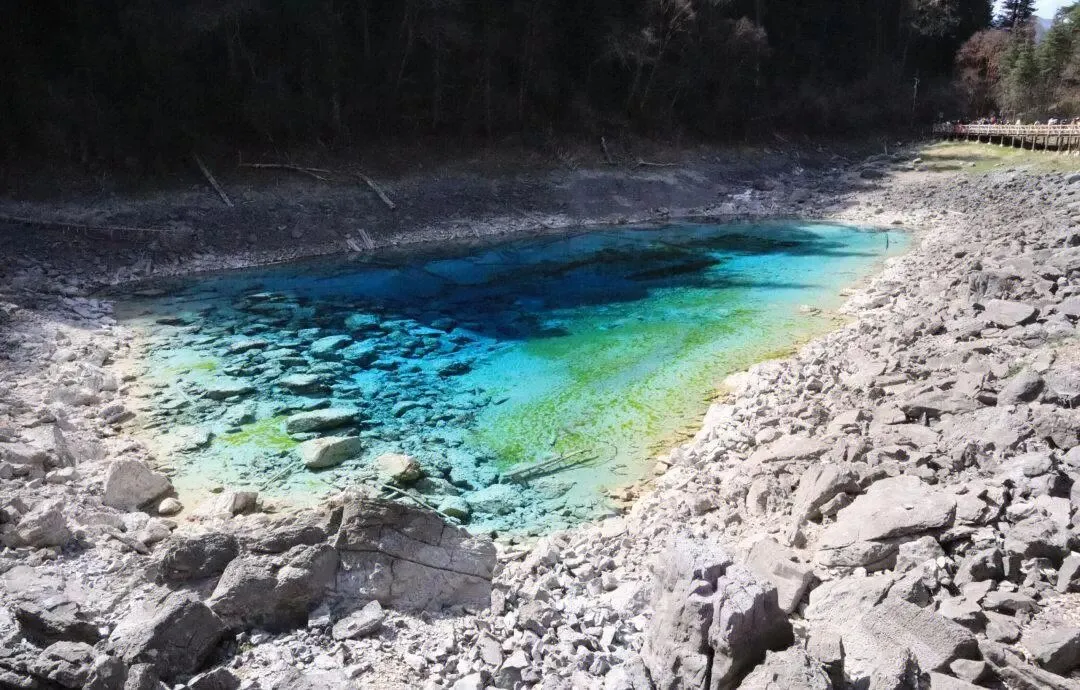 第三个是四川阿坝九寨沟。人们常说“九寨归来不看水”,九寨沟的水确实漂亮,清澈见底,五彩缤纷,但前提是丰水季节。九寨沟每年的丰水期是5月到10月期间,11月到4月期间水位很低。尤其是2月和3月,湖泊和瀑布处于全年最低位,大名鼎鼎的五彩池可能没什么水,全是裸露的岩石,最美的五花海,观感远远不如夏秋季节。