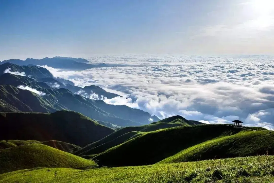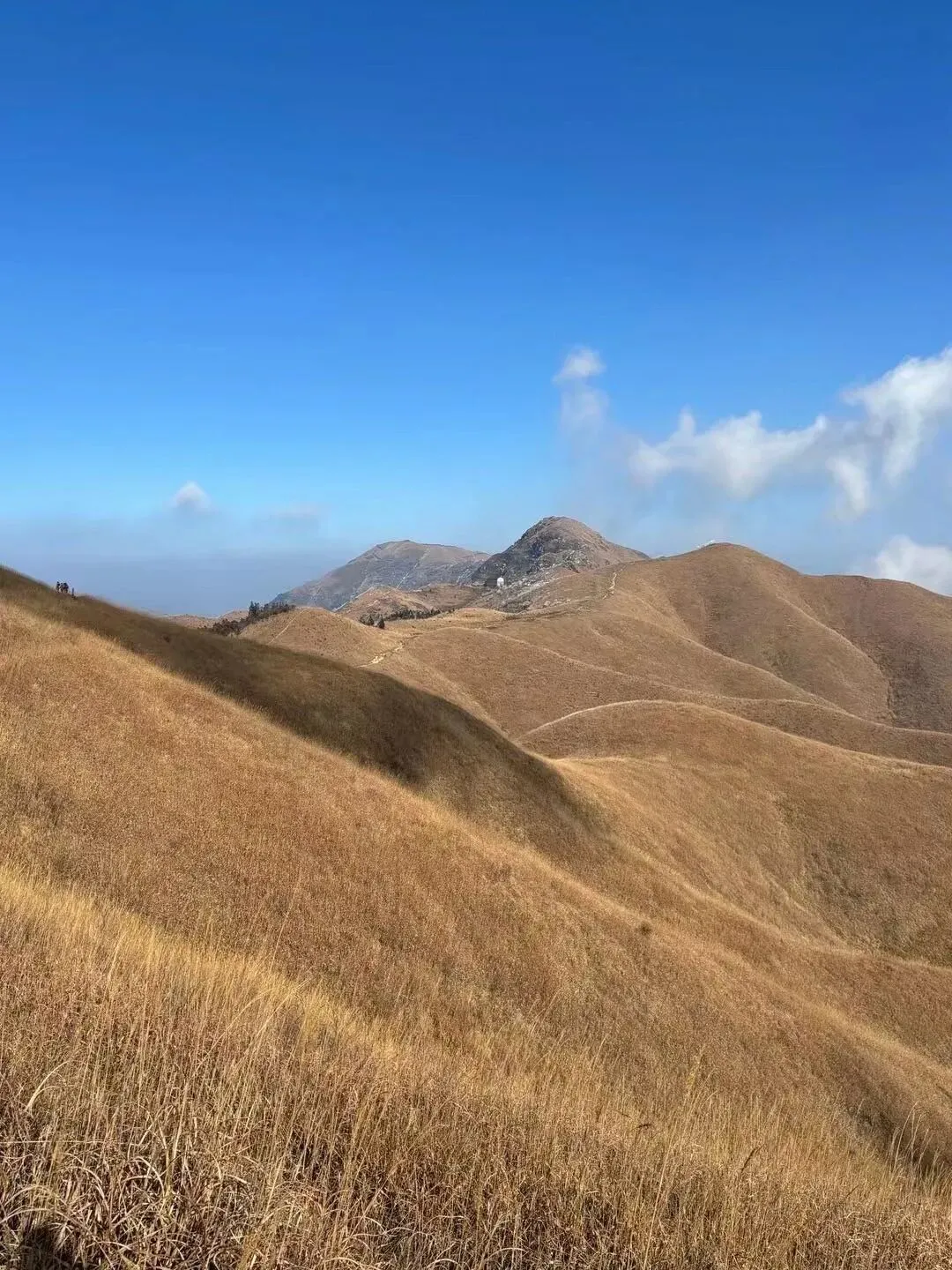 第四个是江西武功山。武功山风景确实不错,但它受季节影响非常大,夏季武功山最美,山顶的草甸绿油油的,堪称天下一绝。秋季武功山草甸泛黄,微光照耀,景致也不错。但在二月冬季,几乎没什么看点,纯徒步。