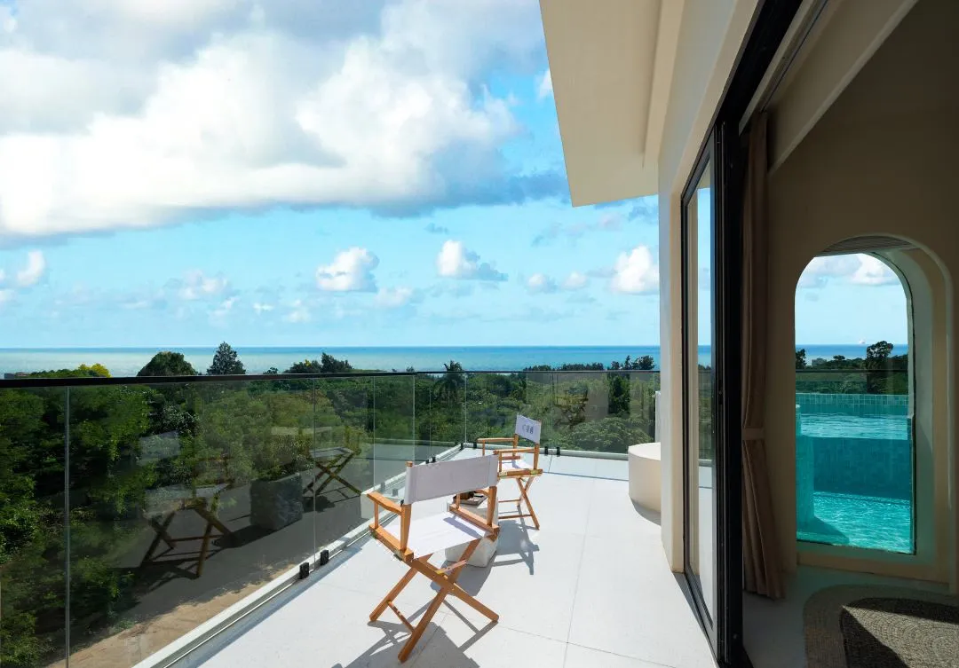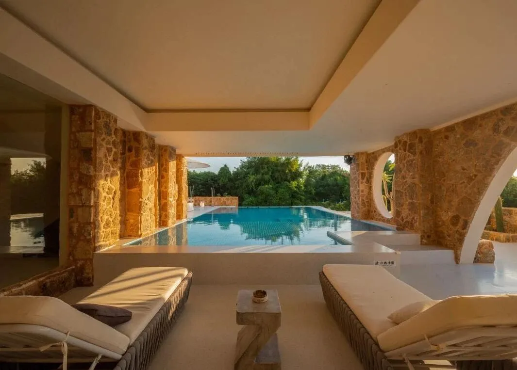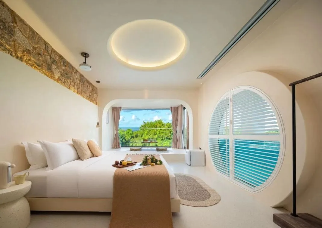 12间雅致客房,解锁舒适旅居体验。部分房型设置独立泳池与泡泡浴缸,超大落地窗引山海风光入室。