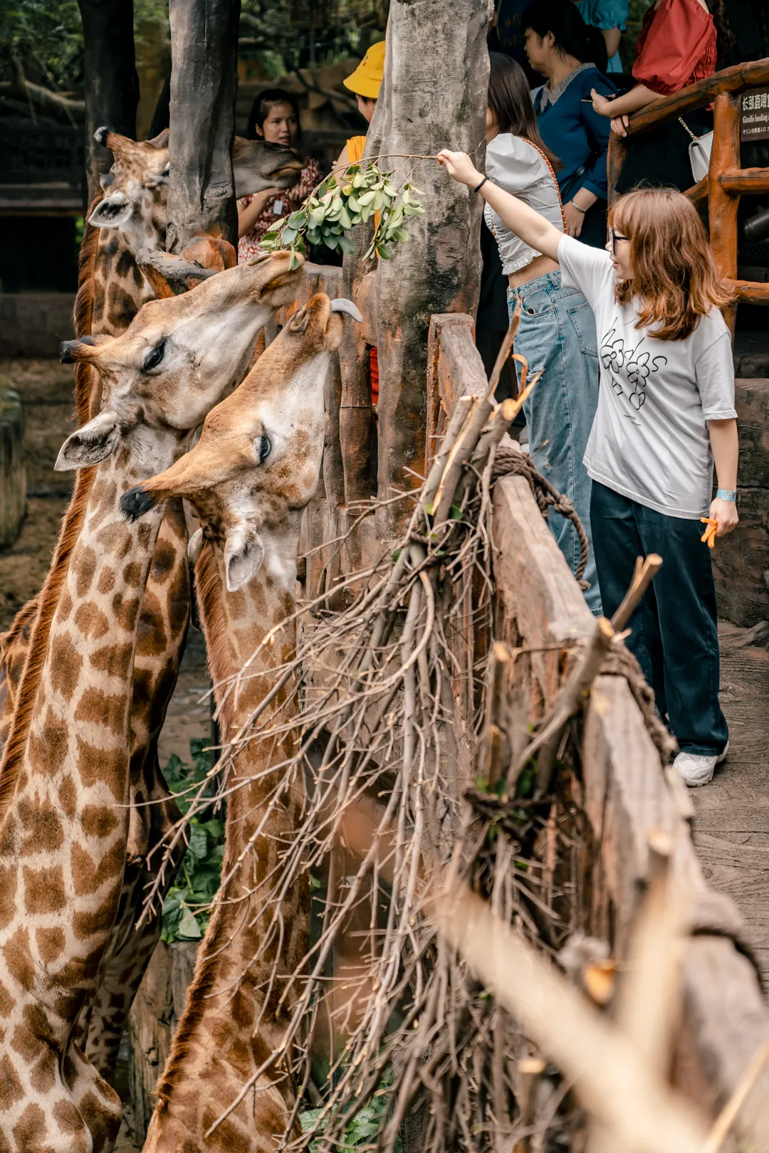 在这还能购买榕树叶来投喂可爱的长颈鹿,它们目光和脚步不断跟随榕树叶,啪嗒啪嗒向你走来,水灵灵的大眼睛看着你,直接被萌翻啦~