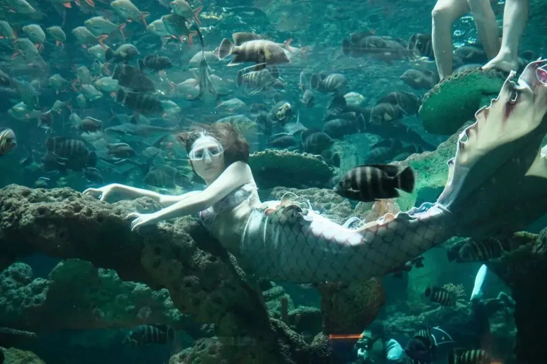 进入这个湛蓝的矿洞海洋馆,仿佛来到另外一个梦幻时空,为我揭开了海底世界的神秘面纱。结队的深海鱼群在四周成群游动,珊瑚飘飘,我们竟还可以自身化作美人鱼在水中遨游,和这些活泼可爱的小鱼零距离互动!