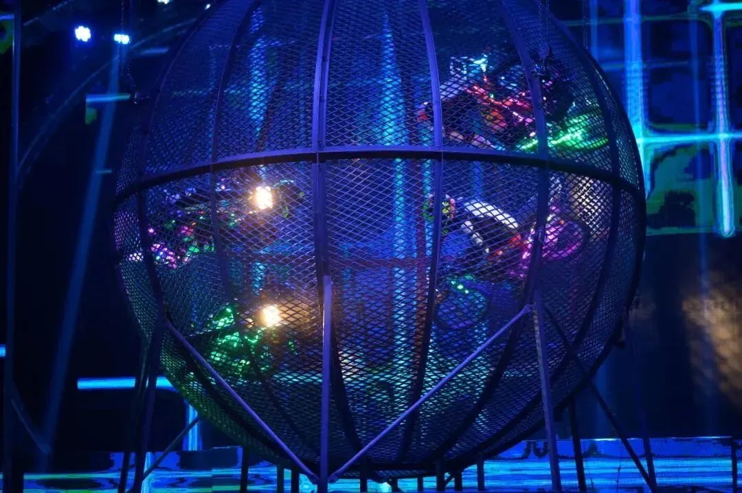 来到地球村幻秀马戏至大亮点的「环球飞车」,专业的特技演员在环球里驾驶着炫光飞驰,抛开地心引力享受速度与激情,将现场氛围不断推向高潮,欢呼声一浪接一浪!