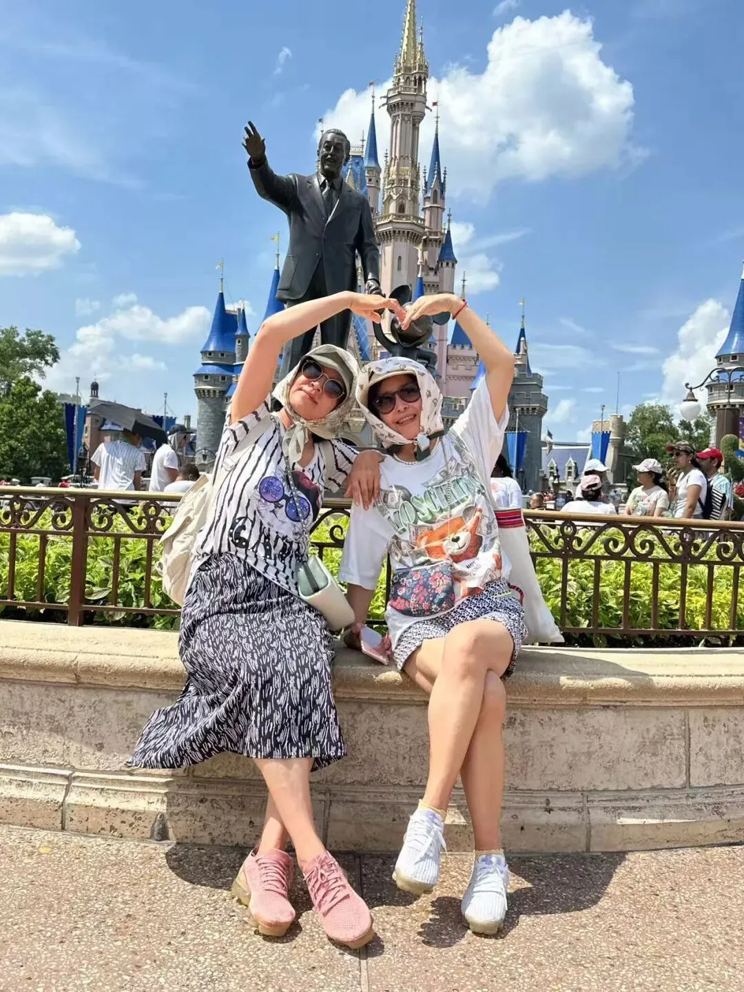 在创始人华特的塑像前拍一张照片