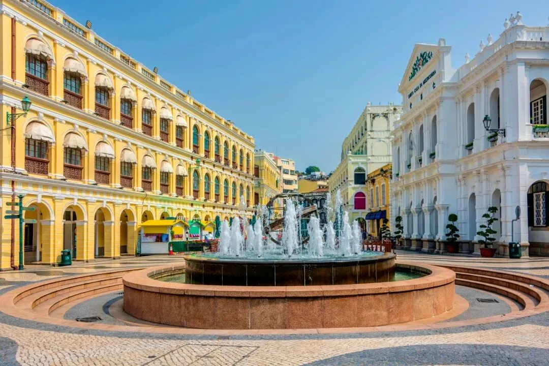 新马路议事亭前地:澳门的市中心,四周坐落多座百年历史的葡式老建筑,黑白相间的波浪地面和中央的喷水池更添南欧风情,是美食和购物的天堂。