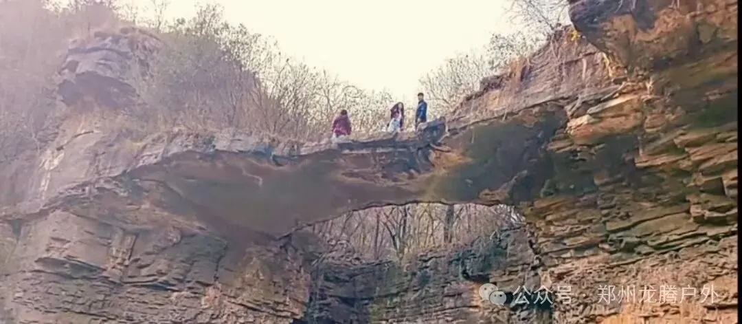 天生桥在沟两边陡峭的悬崖之间,一天生石桥飞架而过