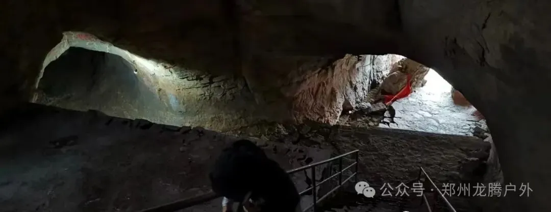 游客至此,可感到山风吹拂,过大厅继续前行,山洞突然变小、变低,