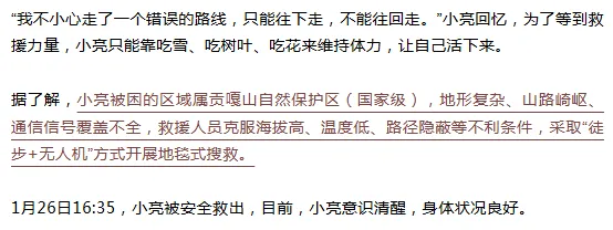 “至少自己以后不能再做莽撞的事了,也给大家造成了很多麻烦,耽误大家那么多天的时间、人力,没有他们,我可能真的就留在山上了。”小亮说。