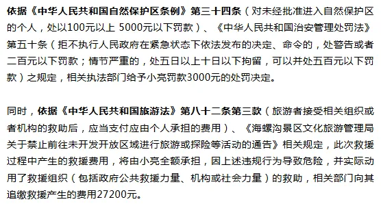 处罚!男子擅闯四川海螺沟未开发景区,获救后被罚3000元,缴纳救援费用2.7万元