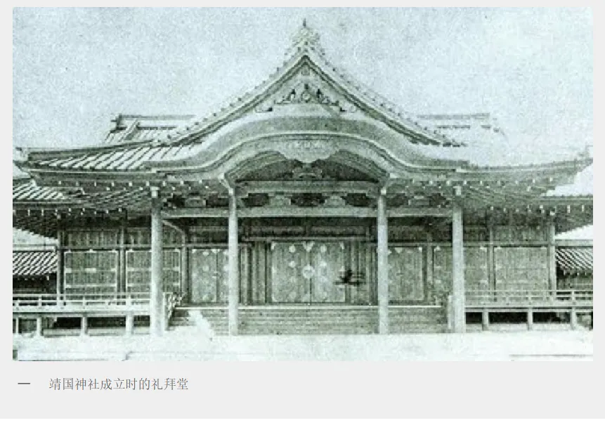 为供奉在明治维新中牺牲的先驱志士的灵魂,这座建筑原由有识之士建于京都。1931年,被奉纳并移至靖国神社。由于它是供奉为国捐躯者神灵的靖国神社的前身,因此被称为“元宫”。