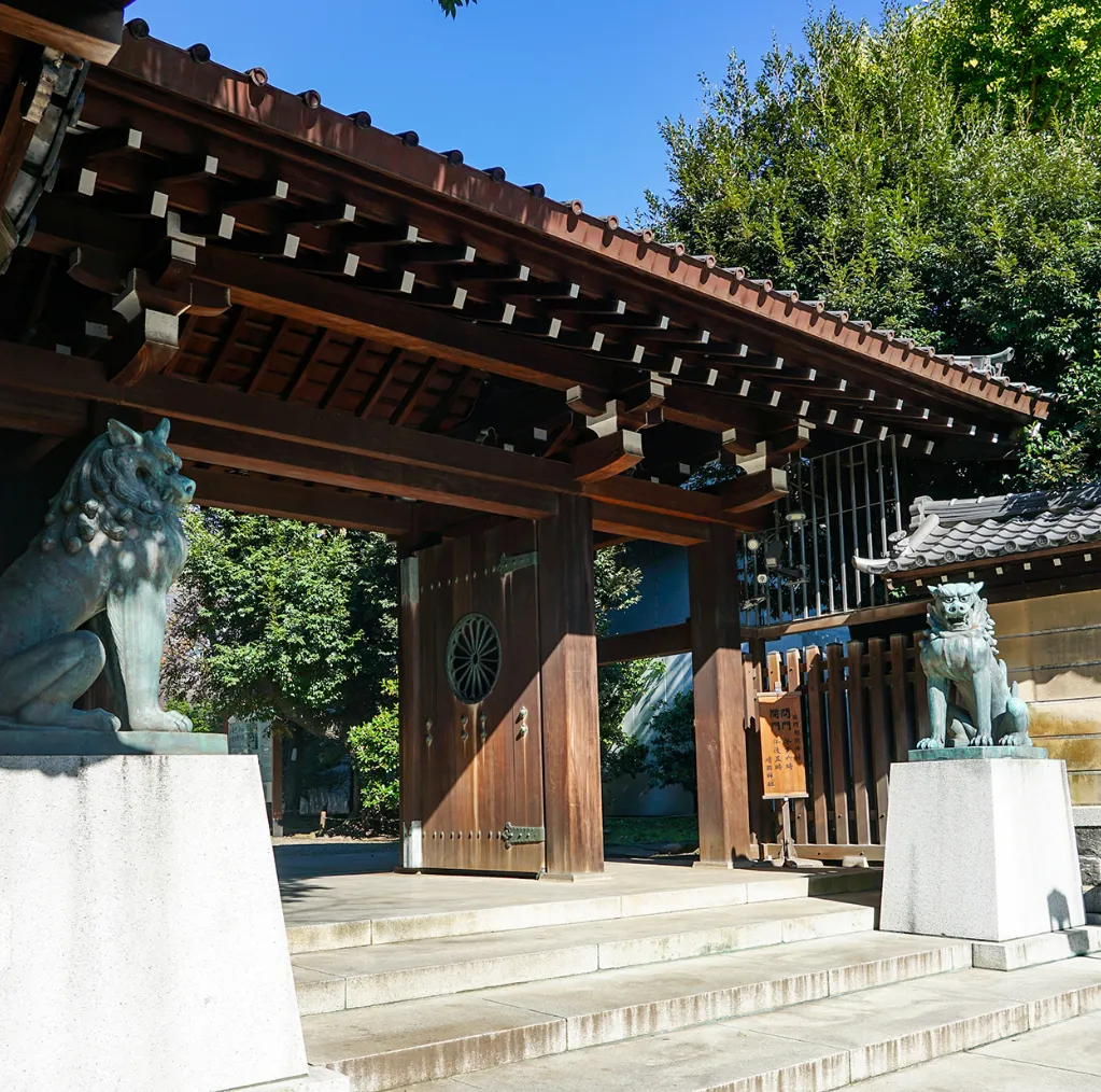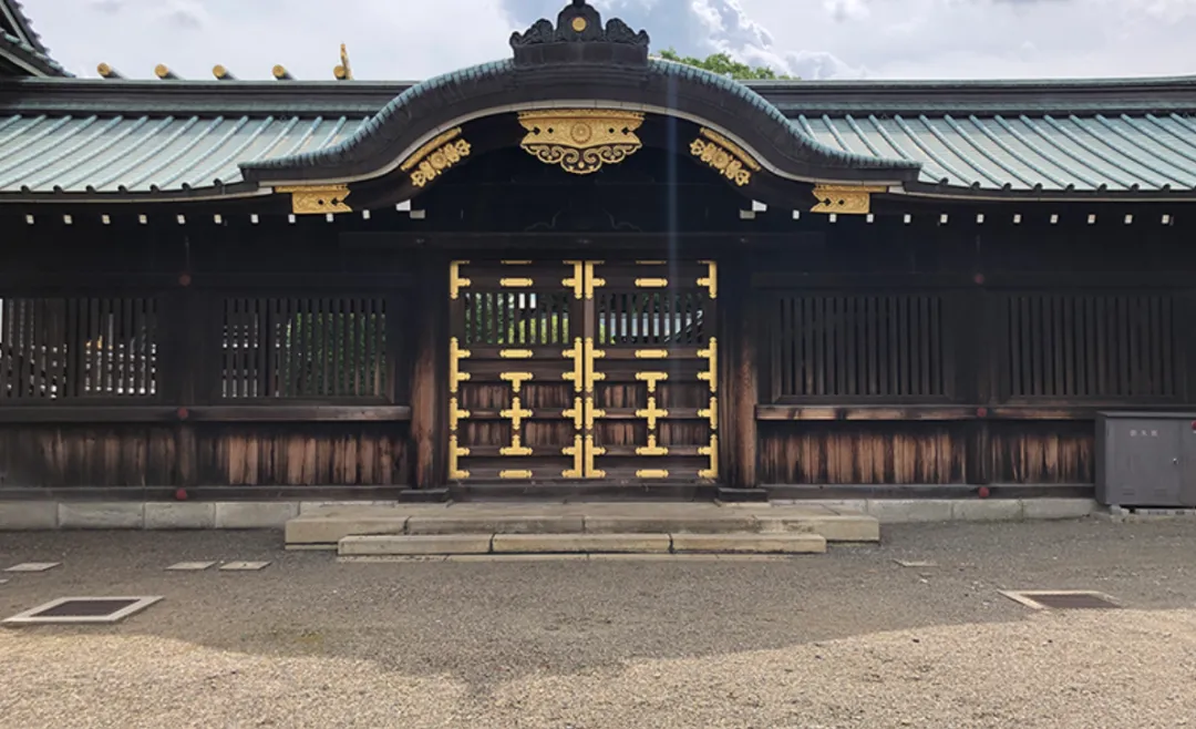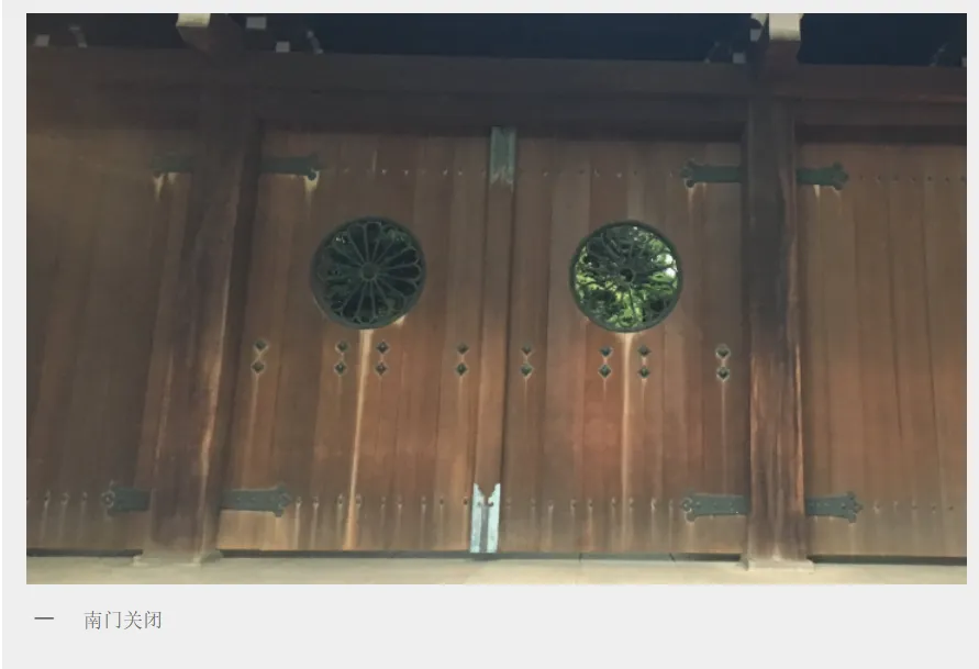 靖国神社有三道门:神社门、南门和北门,但北门只有一扇门,因此作为建筑的门只有神社门和南门。