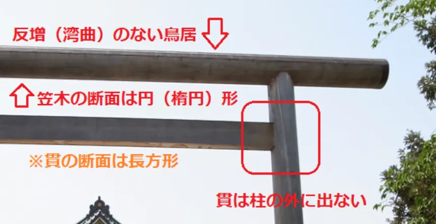 中门鸟居被称为“白鸟居”,使用剥去树皮且未上色的原木。