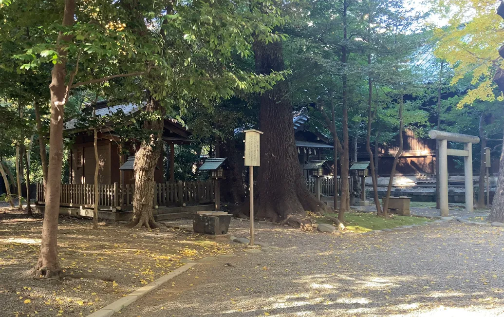 拜殿前的中门鸟居是于2006年使用埼玉县的日本扁柏改建而成的。