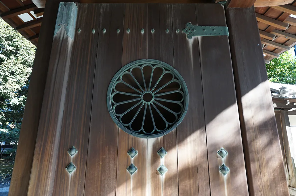 神门建于1934年,中央的两扇门上挂着直径长达1.5米的菊花天皇家徽。