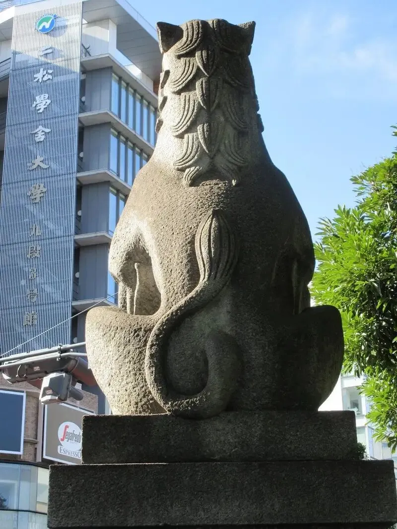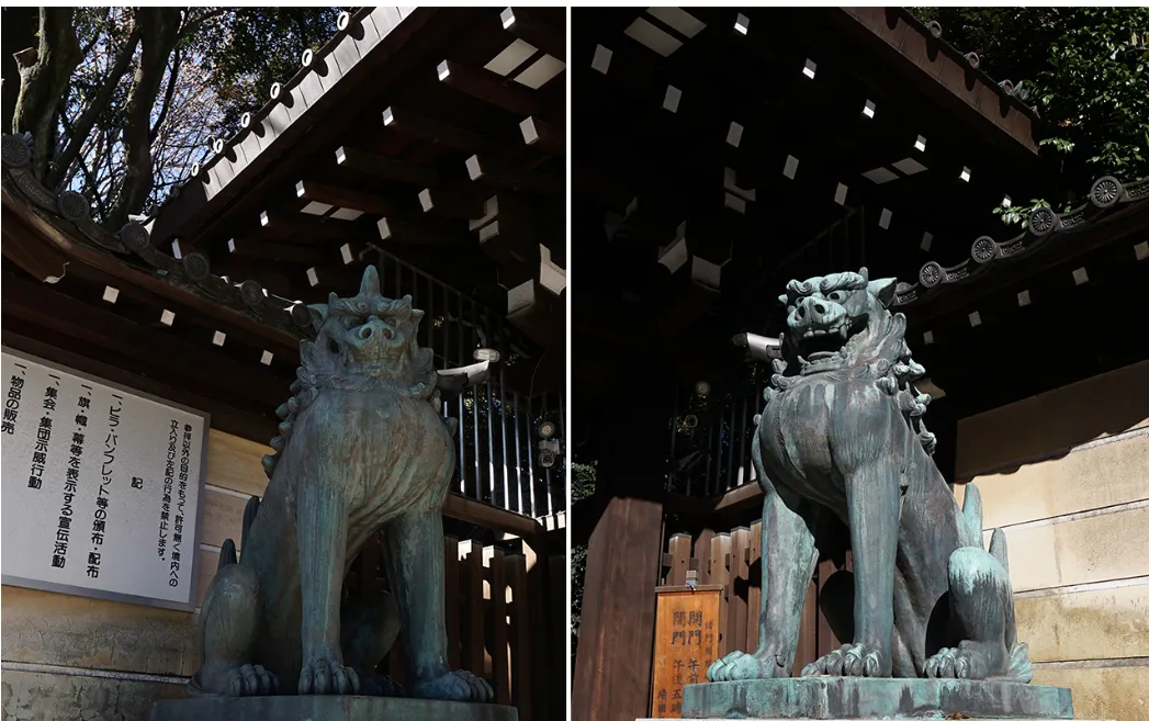 南门前的一对狛犬于1963年(昭和38年)奉献,是靖国神社范围内唯一由青铜制成的狛犬只。